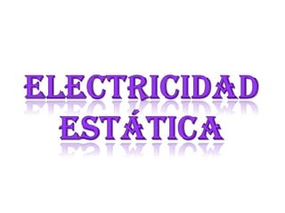Este documento describe los fenómenos eléctricos naturales como los rayos y relámpagos que ocurren cuando las nubes cargadas de electricidad estática chocan, y explica cómo se pueden observar pequeñas descargas eléctricas estáticas al frotar objetos como un peine de plástico con lana o una vara de vidrio con seda. También define el electroscopio como un instrumento para detectar la electricidad estática y explica cómo dos globos cargados con un peine de cabello se repelen debido a su misma carga eléct