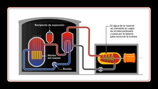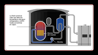 La energía nuclear se genera al desintegrar átomos de uranio mediante fisión o fusión nuclear, procesos en los que se liberan partículas y energía. La fisión ocurre cuando los núcleos de isótopos son bombardeados con neutrones, descomponiéndose en dos núcleos más pequeños, mientras que la fusión implica lanzar dos isótopos uno contra el otro para formar un átomo de helio. Las centrales nucleares generan residuos convencionales, tóxicos y radiactivos que requieren tratamiento y aislam