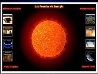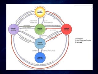 El documento describe varias tecnologías y sistemas para generar energía de manera sostenible y libre de emisiones contaminantes, incluyendo energía eólica, solar, geotérmica, mareomotriz y undimotriz. También se mencionan combustibles y vehículos alternativos como el hidrógeno, biocombustibles y vehículos eléctricos, así como tecnologías de energía libre atribuidas a inventores como Nikola Tesla. El documento concluye señalando que la energía universal y la información