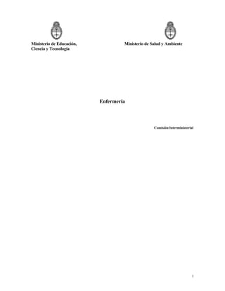 Este documento presenta el perfil profesional de la enfermería y las bases para la organización curricular de la carrera de enfermería. Define a la enfermería como una profesión que brinda cuidados de salud tanto en la comunidad como en los servicios de salud, con el objetivo de promover la calidad de vida de las personas. Justifica la necesidad de este perfil debido a cambios en los sistemas de salud y las necesidades de la población. Establece los lineamientos para la formación de enfermeras generalistas con conocimientos comunit