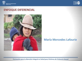 Este documento trata sobre la formación para la atención integral en salud para víctimas de violencia sexual. Explica la importancia de un enfoque diferencial que reconozca las especificidades de grupos vulnerables como mujeres, niños, personas con discapacidad y minorías. También destaca la necesidad de sistemas de salud universales y equitativos, y estrategias educativas interculturales e inclusivas para abordar la violencia sexual y minimizar su impacto en estas poblaciones.