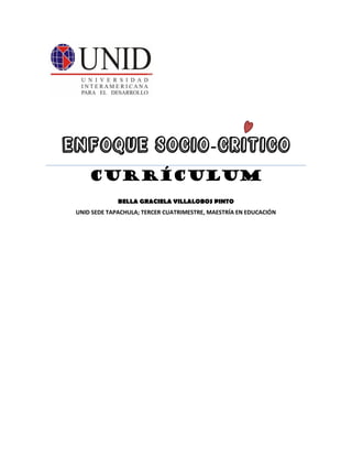 El enfoque socio-crítico del currículo busca modificar las estructuras sociales de la educación para crear individuos críticos capaces de pensar de manera objetiva. Se basa en la teoría crítica de la Escuela de Frankfurt y pretende cambiar la estructura social en la que se basa la educación. Los estudiantes desarrollan sus capacidades cognitivas en torno a las necesidades sociales para una colectividad considerando el hacer científico.