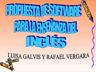 El documento presenta una propuesta de software educativo para la enseñanza del inglés para estudiantes de sexto grado con bajos conocimientos previos. El software se centrará en vocabulario básico, saludos, objetos de la clase, verbos y números para hacer el aprendizaje más atractivo e interactivo mediante juegos y canciones.