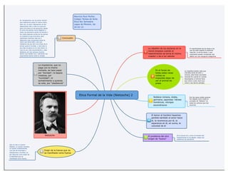 Nietzsche analiza la ética de la vida desde una perspectiva noble. Describe cómo el resentimiento de los débiles dio origen a valores como la humildad y la obediencia para compensar su falta de poder. Argumenta que la nobleza se caracteriza por la fuerza, el heroísmo y la conquista, mientras que la debilidad se disfraza de bondad. Concluye que cuanto más lee a Nietzsche, más entiende su perspectiva de que los poderosos siempre estarán por encima de los demás.