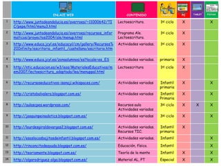 Este documento lista 55 enlaces web de recursos educativos para diferentes niveles, desde infantil hasta secundaria. Los recursos incluyen materiales para lectoescritura, matemáticas, cuentos, actividades variadas, software educativo y más. La mayoría de los recursos están disponibles para PC y tableta y cubren asignaturas como lengua, ciencias sociales y educación especial.