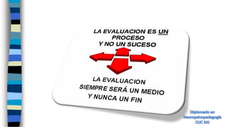 La evaluación psicopedagógica es un proceso de recolección y análisis de información sobre los elementos que intervienen en el aprendizaje de un estudiante, con el fin de apoyar la toma de decisiones sobre su situación escolar. Existen diferentes enfoques como el psicotécnico, conductual, de potencial de aprendizaje y diagnóstico pedagógico. La evaluación busca identificar las necesidades educativas del estudiante para determinar estrategias de intervención que favorezcan su desarrollo.