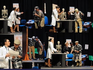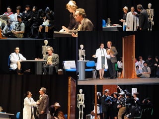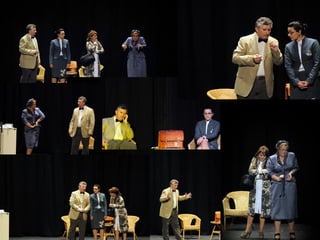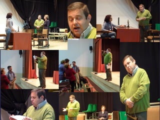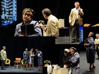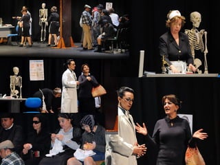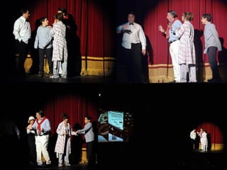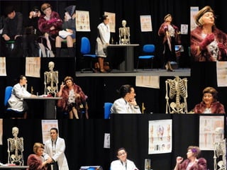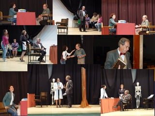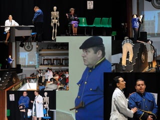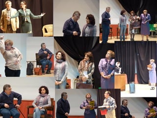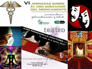 Este documento describe la presentación de una obra teatral titulada "La vuelta de la doctora Quina" realizada por el Grupo de teatro de la Gerencia de Salud de Plasencia. La obra se presentó el 19 de noviembre de 2011 en el Área de salud de Plasencia y contó con la dirección de Julián Onofre Salgado Pacheco. El documento incluye detalles sobre los actores, la adaptación de la obra, y fotografías de la presentación.
