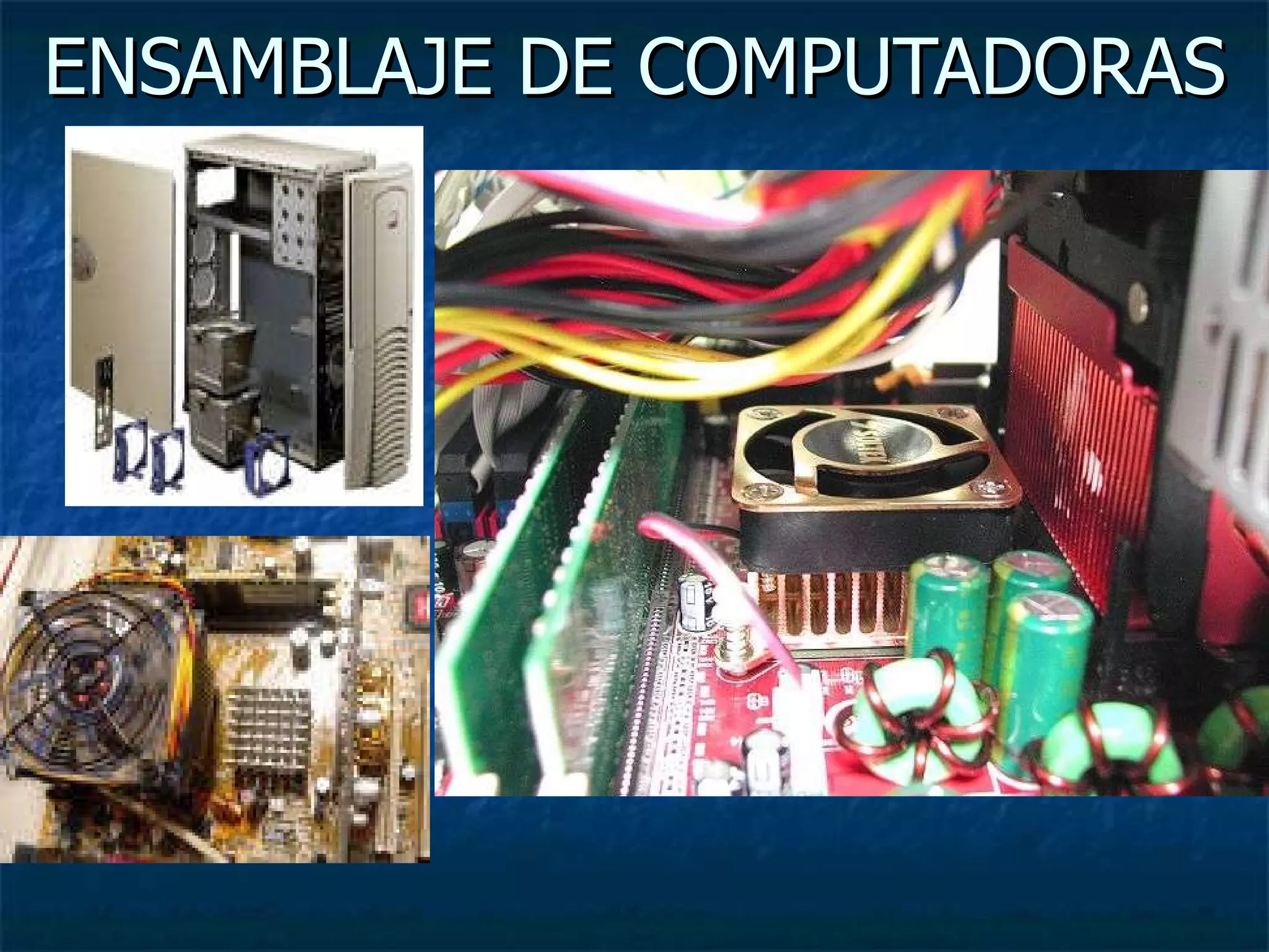 Este documento proporciona instrucciones detalladas para ensamblar una computadora personal (PC) desde cero. Explica cómo instalar los principales componentes como la placa base, procesador, memoria, tarjetas de video y sonido, y discos duros. También describe el proceso de montaje de la placa base dentro de la caja y la instalación de ventiladores y otros accesorios. El objetivo es proporcionar una guía paso a paso para que cualquier persona pueda construir su propia PC.