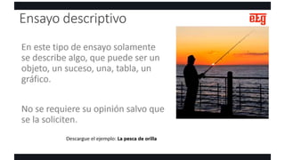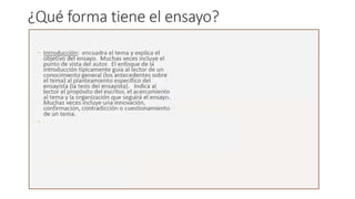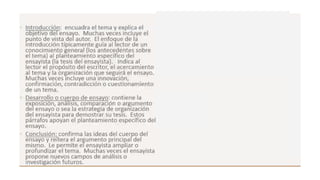 El documento proporciona pautas para desarrollar un ensayo académico, enfatizando la importancia de la introducción y el desarrollo del tema con referencias bibliográficas apropiadas. Se incluye una guía sobre cómo citar fuentes utilizando Google Académico y el formato APA. Además, se mencionan recursos en línea para ayudar en la escritura de ensayos.
