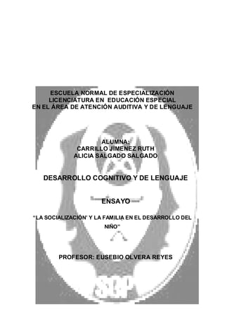 La familia es el primer agente de socialización del niño y juega un papel crucial en su desarrollo social, afectivo y cognitivo. A través de la interacción con los padres y otros miembros de la familia, el niño aprende las normas sociales, el lenguaje, y cómo formar vínculos afectivos. La familia provee los primeros aprendizajes que permiten al niño interactuar de manera autónoma en la sociedad a medida que crece.