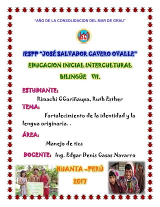 El documento aborda la importancia del fortalecimiento de la identidad y la lengua originaria en Perú, destacando que la identidad se construye a lo largo de la vida y es influenciada por diversos factores culturales y sociales. Se enfatiza la necesidad de revalorizar y preservar las lenguas indígenas, que enfrentan el riesgo de extinción debido a la globalización y la marginación. Además, se celebra el Día del Idioma Nativo como un esfuerzo para promover el aprendizaje y reconocimiento de la diversidad cultural del país.