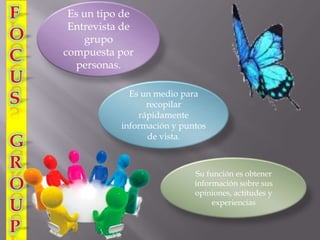 Este documento describe diferentes tipos de herramientas de comunicación como entrevistas de grupo, foros de discusión y mesas redondas. Explica que las entrevistas de grupo recopilan rápidamente información y puntos de vista de un grupo de personas, mientras que los foros permiten una comunicación asíncrona entre participantes. Las mesas redondas son discusiones dirigidas por expertos sobre un tema determinado.