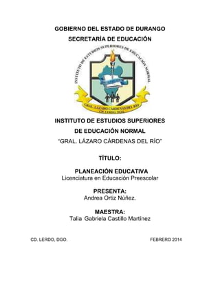 Este documento presenta las opiniones de Andrea Ortiz Núñez sobre dos lecturas relacionadas con la planeación educativa y la reforma educativa. Ella argumenta que centralizar la educación en lo laboral tiene sentido dado que las personas estudian principalmente para asegurar su futuro profesional. Sin embargo, también señala que los planes de estudio no siempre toman en cuenta las diferencias individuales de los estudiantes y que es responsabilidad de los maestros adaptar los planes a las necesidades de cada grupo. Aunque apoya algunos aspectos de la reforma educativa como la evaluación docente, también