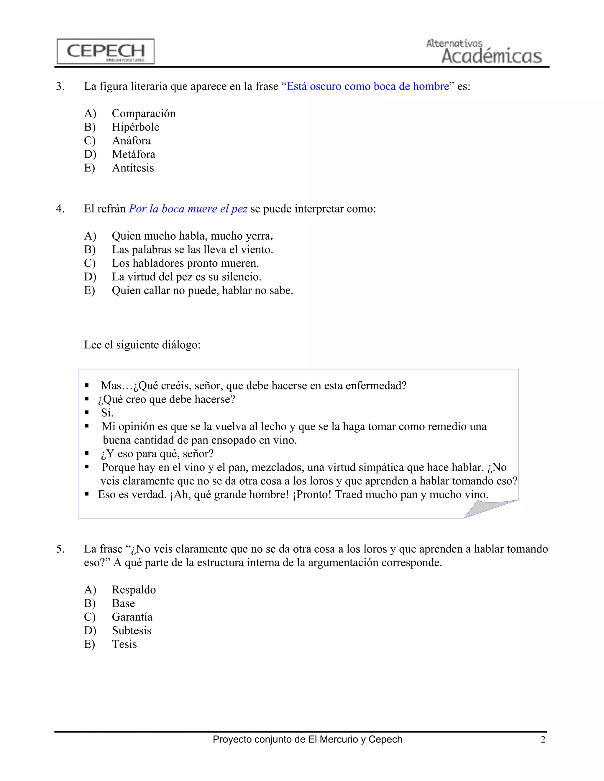 1. El documento presenta preguntas sobre conocimientos y habilidades generales de lenguaje y comunicación. 2. Incluye preguntas sobre la estructura interna de la argumentación, el manejo de conectores, y la producción de textos. 3. El objetivo es evaluar diferentes dimensiones relacionadas con el lenguaje y la comunicación.