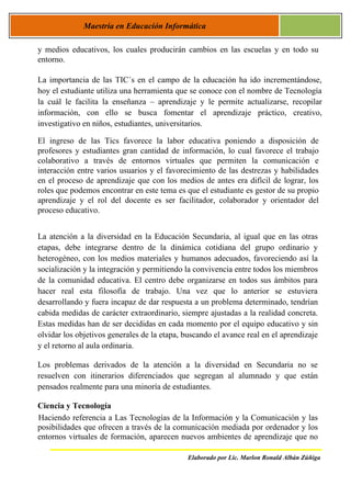 Este documento trata sobre la globalización y las tecnologías de la información y la comunicación en la educación superior. Discute cómo la globalización y las nuevas tecnologías están cambiando el enfoque educativo tradicional y cómo las instituciones educativas y los gobiernos deben modificar sus políticas para adaptarse a estos cambios. También analiza el impacto de las tecnologías de la información en la educación y los nuevos roles de los estudiantes y maestros en entornos de aprendizaje mediados por la tecnología.