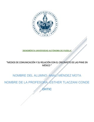 El documento analiza la relación entre las tecnologías de la información y la comunicación (TIC) y las pequeñas y medianas empresas (PYME) en México, destacando cómo la adopción de TIC puede impulsar la innovación y expandir el mercado de estas empresas. Se aborda la importancia del marketing digital y la gestión de la reputación online, así como las barreras que enfrentan las PYME al implementar nuevas tecnologías. La conclusión enfatiza que el uso efectivo de las TIC puede beneficiar tanto a las PYME como a los consumidores, generando una experiencia de compra mejorada.