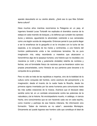 Ernesto Sabato reflexiona sobre la educación en América Latina y critica el enfoque enciclopedista y memorístico de la enseñanza. Argumenta que se debe enseñar menos temas de forma más profunda para formar personas cultas con pensamiento crítico, en lugar de simplemente recitar datos. También propone enseñar las disciplinas desde una perspectiva más humana que muestre la lucha del ser humano.