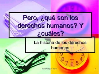 El documento trata sobre la enseñanza de los derechos humanos. Explica que la educación es un derecho humano fundamental y analiza conceptos como la historia de los derechos humanos, las características de los derechos humanos como innatos y universales, y la importancia de educar para la convivencia como una responsabilidad compartida entre la familia, la escuela y la sociedad. También aborda temas como la resolución de conflictos, los modelos educativos inclusivos y la pirámide de necesidades humanas de Maslow.