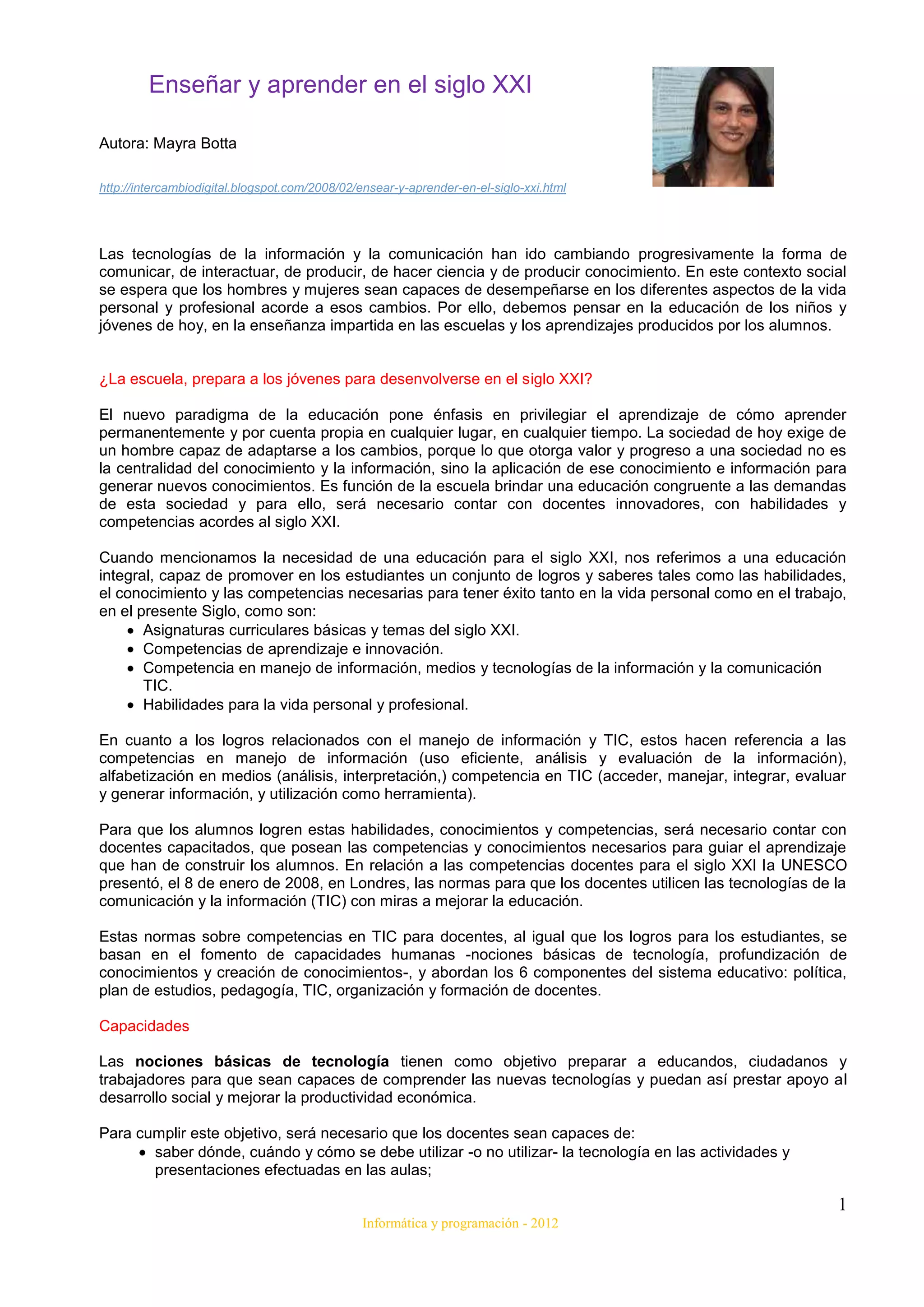 Las tecnologías de la información han cambiado la forma de comunicar y producir conocimiento, por lo que la educación debe preparar a los estudiantes para el siglo XXI. Esto requiere que los docentes tengan competencias digitales como usar la tecnología adecuadamente, apoyar proyectos de estudiantes, y fomentar la creación de conocimientos. Las Normas UNESCO establecen lineamientos para capacitar a los maestros en el uso de las TIC y mejorar la educación.