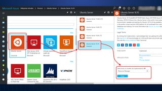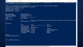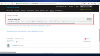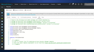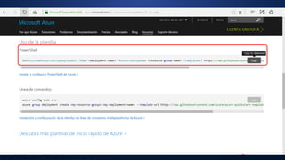 Este documento presenta una demostración sobre cómo desplegar servicios de máquinas virtuales con Azure Resource Manager (ARM) en Microsoft Azure. Explica cómo crear máquinas virtuales desde el portal de Azure, Visual Studio, GitHub, la línea de comandos y PowerShell, todos utilizando plantillas ARM. El objetivo es aprender a implementar recursos de Azure de manera programática y administrar su ciclo de vida a través de ARM.