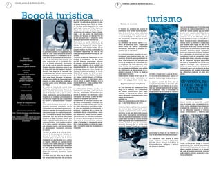 El documento habla sobre la ciclovía de Bogotá, un circuito de 121 km que funciona los domingos y festivos para que los ciudadanos realicen actividades al aire libre y ejercicio. También menciona el Parque Chicaque, ubicado a 30 minutos de Bogotá, que ofrece senderismo, cabalgatas, alojamiento y más de 18 km de senderos para el ecoturismo. Finalmente, promueve el turismo de aventura en la naturaleza mediante actividades como escalada en roca, espeleología y otros deportes.