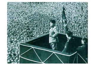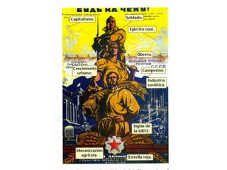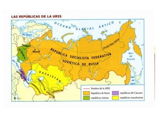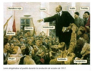 El documento describe las condiciones políticas, económicas y sociales que llevaron a la Revolución Rusa de 1917. Rusia era un país atrasado y dominado por una monarquía autocrática bajo el Zar Nicolás II. Había una gran desigualdad social y económica, con la mayoría de la población campesina viviendo en la pobreza. La participación en la Primera Guerra Mundial empeoró aún más la situación, lo que llevó a protestas masivas y la abdicación del Zar en febrero de 1917