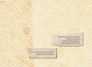Este documento es una carta de felicitación por la jubilación de Amparo, una enfermera que trabajó durante más de 40 años en un centro de salud en Valencia. La carta describe la larga y dedicada carrera de Amparo, resaltando su buen humor, compañerismo y compromiso con sus pacientes. También celebra que ahora Amparo podrá disfrutar de una merecida jubilación y pasar más tiempo con su familia y amigos.