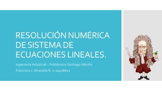 Este documento describe varios métodos para resolver sistemas de ecuaciones lineales, incluyendo el método de Gauss, el método de Gauss-Jordan, el método de descomposición LU, el método de pivoteo y el método de Jacobi. Explica que estos métodos transforman sistemas de ecuaciones en otras formas equivalentes para encontrar sus soluciones numéricamente.