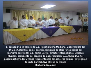 El 13 de febrero se fundó el nuevo Club de Leones de Riohacha, La Guajira en Colombia. Altos funcionarios del leonismo, incluido el director internacional Jaime García, entregaron la carta constitutiva al club Riohacha Walapüin ante 30 socios fundadores. Los socios juraron servir a través del nuevo club y recibieron sus botones de membresía.