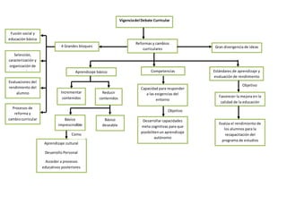Este documento presenta información sobre la evaluación curricular y de los estudiantes. Discuten temas como los diferentes enfoques de evaluación (formativa y sumativa), los métodos de investigación utilizados, y los fundamentos y procesos de evaluación curricular interna y externa. También incluye la propuesta personal del autor sobre realizar evaluaciones más frecuentes y enfocadas en el aprendizaje individual, en lugar de exámenes que promueven la memorización. El autor concluye que México debe desarrollar sus propias formas de evaluación adapt