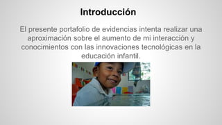 Este documento presenta el portafolio de trabajo de Angélica Ramírez Bretón. Describe una investigación sobre el desarrollo del pensamiento matemático en preescolares a través del uso de videos educativos. Incluye enlaces a videos que muestran la implementación de esta estrategia. Angélica concluye que ahora ve las tecnologías como una herramienta con nuevas posibilidades de implementación en el aula de manera consciente y didáctica.
