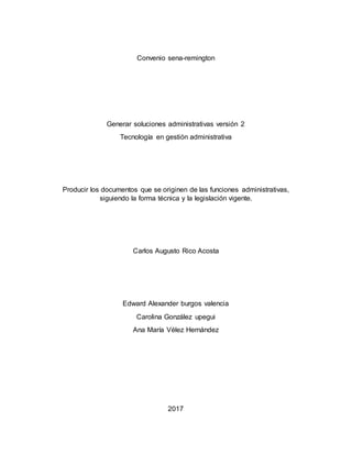 Este documento proporciona instrucciones para la redacción de diferentes tipos de documentos administrativos, incluyendo certificados, constancias y notas internas. Explica la estructura, partes y utilidad de cada tipo de documento. Además, define conceptos como los signos de puntuación, el teclado y la ergonomía. El objetivo general es redactar documentos siguiendo la normativa técnica y legal vigente.
