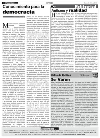 Este documento contiene tres artículos relacionados con la política venezolana. El primero resume la posición de la presidenta del Tribunal Supremo de Justicia sobre la candidatura de 8 presos políticos, afirmando que no pueden ser candidatos. El segundo artículo critica el "autismo político" del gobierno venezolano que niega otras realidades. El tercero discute el significado de ser un "varón" en la sociedad moderna.