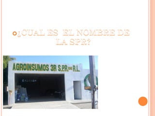 Este documento resume una entrevista realizada a Jesús Alonso Rosales Terán como parte de un proyecto escolar de la Facultad de Agricultura del Valle del Fuerte. La entrevista trata sobre la empresa SPR, fundada en 2014 por Omar Noe Rosales Terán y Luis Giovanni junto con Jesús Alonso Rosales Terán, cuyo objetivo principal es el comercio al por mayor de agroquímicos y fertilizantes para ofrecer bajos precios y disponibilidad rápida a los productores agrícolas. La empresa cuenta actualmente con 4 empleados y