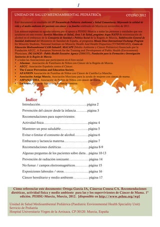 Este documento proporciona recomendaciones sobre dieta, ejercicio físico y medio ambiente para las supervivientes de cáncer de mama. Se destaca la importancia de la prevención del cáncer de mama desde la infancia a través de estilos de vida saludables que disminuyan la exposición a sustancias químicas. También se incluyen recomendaciones específicas para supervivientes sobre mantener un peso saludable, limitar el consumo de alcohol, embarazo y lactancia materna, y evitar la radiación ioniz