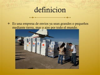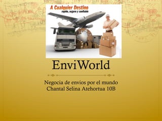 EnviWorld es una empresa de envíos a nivel mundial por tierra, mar y aire. Tendrá tiendas locales y una oficina principal en el aeropuerto para envíos aéreos. Ofrece servicios seguros y económicos para competir con las grandes empresas del sector. Su objetivo es atraer y retener clientes ofreciendo promociones a bajo costo.