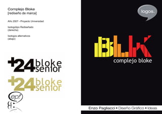 Este documento presenta el portafolio de trabajo de Enzo Pagliacci como diseñador gráfico. Incluye proyectos de identidad corporativa, logotipos, papelería comercial, folletos y sitios web para diversas empresas entre los años 2007-2009. También incluye información personal como fecha de nacimiento, lugar de origen, contacto y detalles de su formación universitaria.