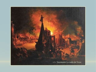 El documento resume los poemas épicos más importantes de diferentes culturas como Mesopotamia, la India, Grecia y Roma. Describe los protagonistas y argumentos principales de obras como el Poema de Gilgamesh, el Mahabharata, la Ilíada, la Odisea y la Eneida. También resume algunas epopeyas medievales europeas como Beowulf, Los Nibelungos, el Cantar de Roldán y el Cantar de Mío Cid.