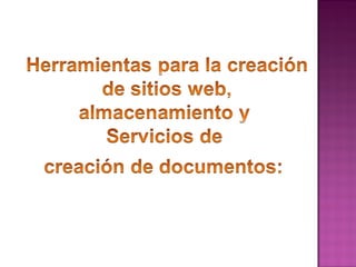 Este documento describe varias herramientas digitales para el aprendizaje y la colaboración en línea, incluyendo plataformas para compartir archivos y documentos (Dropbox, Google Drive), crear presentaciones (SlideShare, Prezi), editar videos (Animoto, Video Toolbox), compartir fotos (Flickr, Photobucket) y más. También explica conceptos como entornos de aprendizaje digital, Web 2.0 y sus características.