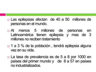 Este documento trata sobre la epilepsia. Algunos puntos clave son: