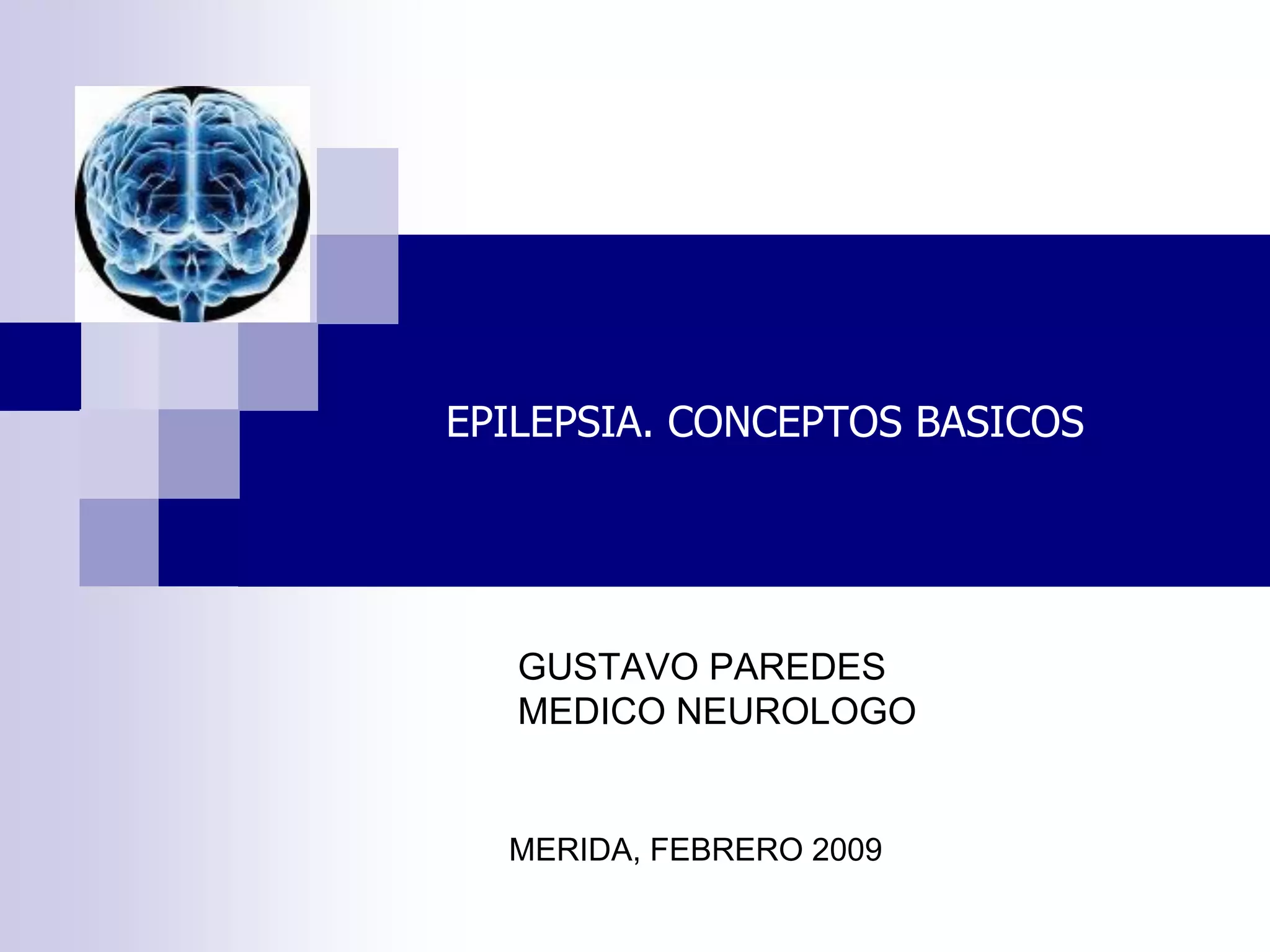 Este documento trata sobre conceptos básicos de epilepsia. Define la epilepsia como un trastorno cerebral crónico caracterizado por crisis recurrentes que resultan de una actividad anormal y excesiva de las neuronas cerebrales. Describe las diferentes clasificaciones de crisis epilépticas, incluyendo crisis parciales, generalizadas y no clasificables. También cubre aspectos del manejo y tratamiento de la epilepsia.