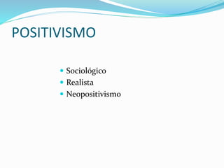 El documento describe tres corrientes sociológicas: el positivismo sociológico creado por Augusto Comte, que ve la sociedad como condicionada por el conocimiento; el realismo sociológico que busca reflejar la realidad tal como es; y el neopositivismo, que considera que solo se pueden hacer proposiciones no falsas o carentes de sentido sobre la realidad observable.