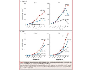 Este documento describe los diferentes fenotipos de EPOC, incluyendo agudizador, mixto EPOC-asma, bronquitis crónica y enfisema. Explica que la clasificación de los pacientes según estos parámetros clínicos permite optimizar la elección del tratamiento. Además, proporciona detalles sobre la epidemiología, impacto, historia natural, etiopatogenia y manifestaciones clínicas de la EPOC.