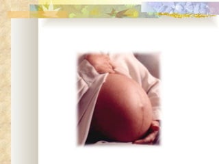 El documento describe las etapas y síntomas típicos de un embarazo de 40 semanas. Se divide en tres trimestres, explicando los cambios físicos y emocionales que experimenta la madre en cada etapa, como náuseas y crecimiento del útero en el primer trimestre, desaparición de síntomas en el segundo, e incomodidades físicas en el tercero a medida que el bebé crece. También se explica brevemente el desarrollo del feto semana a semana.