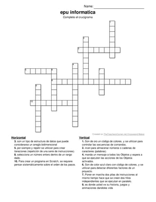 El documento habla sobre conceptos básicos de programación y Scratch. Menciona que los bloques de comandos en Scratch se utilizan para controlar secuencias de instrucciones y almacenar datos, y que los bloques azules detectan factores en un proyecto. También indica que las iteraciones se crean con bloques de repetición y que crear un programa en Scratch requiere pensar sistemáticamente en el orden de los pasos.