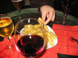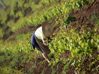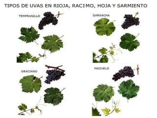 El documento describe la región vinícola de La Rioja en España. Habla sobre la producción de vino tinto, blanco y rosado en La Rioja, con más de 250 millones de litros producidos anualmente. También describe las diferentes subzonas de producción, los requisitos de crianza para los diferentes tipos de vino, las tradiciones culturales relacionadas con el vino como festivales y poesía, y los platos típicos de la región que se suelen acompañar con vino.