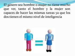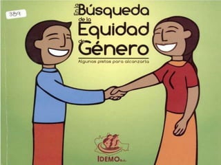 El documento argumenta que la equidad de género es importante para lograr la igualdad de oportunidades y derechos para hombres y mujeres. Promueve un modelo donde el género no determine las tareas o roles que pueden asumir las personas. La equidad de género beneficia a las organizaciones al permitir mayor motivación, compromiso y productividad entre sus miembros. También es necesaria a nivel social para mejorar las condiciones de vida de todos.