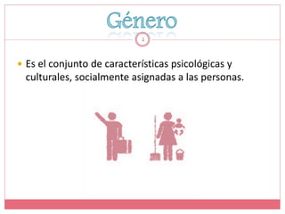 Este documento describe la diferencia entre sexo y género, señalando que el sexo se refiere a características biológicas mientras que el género son roles socialmente construidos. Explica cómo el género se aprende y puede cambiar a través del tiempo y la cultura, mientras que el sexo es inmutable. También destaca la necesidad de promover la igualdad de género y combatir actitudes como el machismo que discriminan a las mujeres.