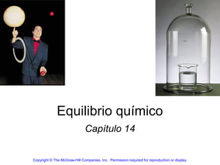 Este documento trata sobre el equilibrio químico. Explica que el equilibrio químico se alcanza cuando las velocidades de las reacciones directa e inversa son iguales y las concentraciones de los reactivos y productos permanecen constantes. También describe cómo calcular las constantes de equilibrio Kc y Kp, y cómo determinar si un sistema en equilibrio se desplazará hacia la izquierda o derecha cuando se aplica una tensión externa según el principio de Le Châtelier.