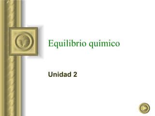 Este documento trata sobre el concepto de equilibrio químico. Explica que un equilibrio químico ocurre cuando las concentraciones de los reactivos y productos se estabilizan, a pesar de que la reacción continúa ocurriendo en ambas direcciones. También define la constante de equilibrio Kc y cómo se ve afectada por cambios en la temperatura, presión y concentración de las sustancias involucradas. Finalmente, discute cómo se pueden modificar las condiciones del equilibrio de acuerdo con el principio de